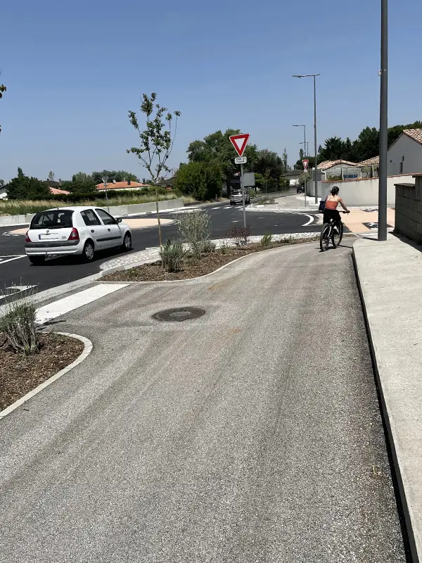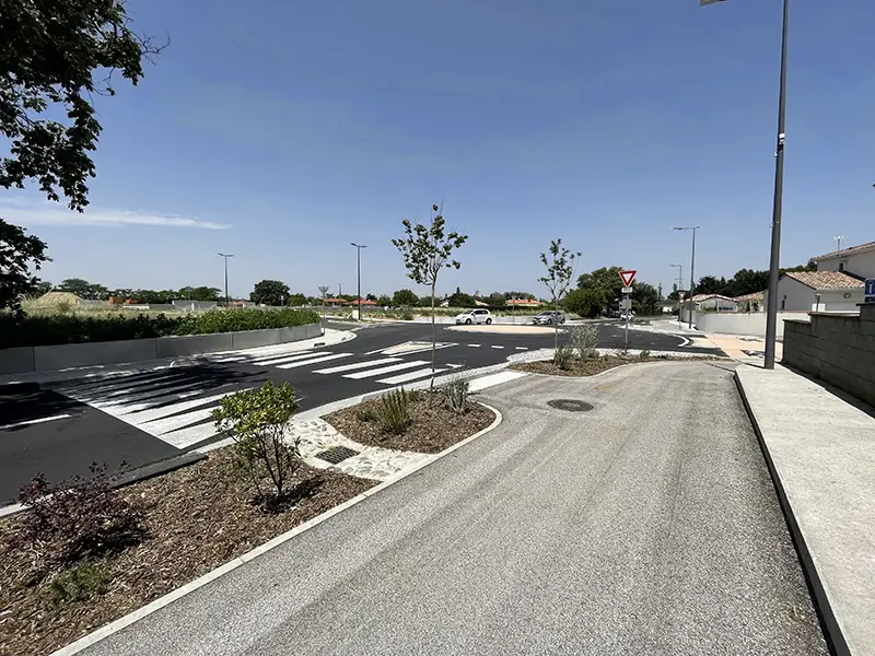 Création d’itinéraires cyclables et de trottoirs PMR de part et d’autre du mini-giratoire
