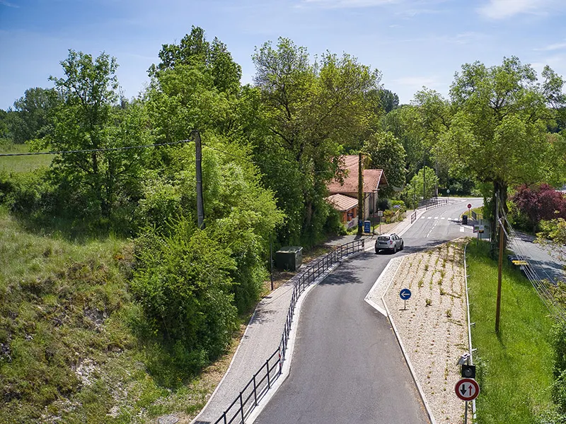 Maîtrise d’oeuvre pour les travaux d’urbanisation de la RD922 depuis le parking en entrée de ville côté Sud-Ouest jusqu’au carrefour chemin de Blazi à CAHUZAC-SUR-VERE. Le chantier comporte l’aménagement des entrées Sud et Nord de la Commune :