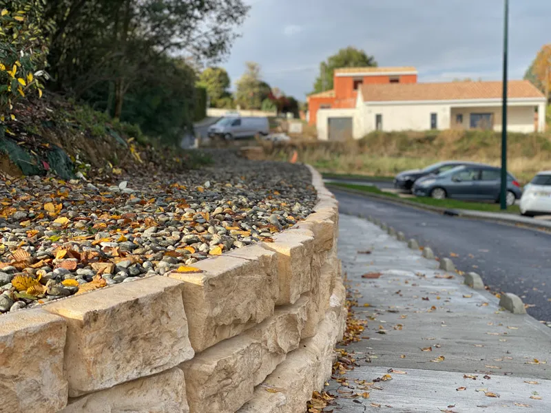 Le montage d’un mur de soutènement composé de blocs préfabriqués décoratifs