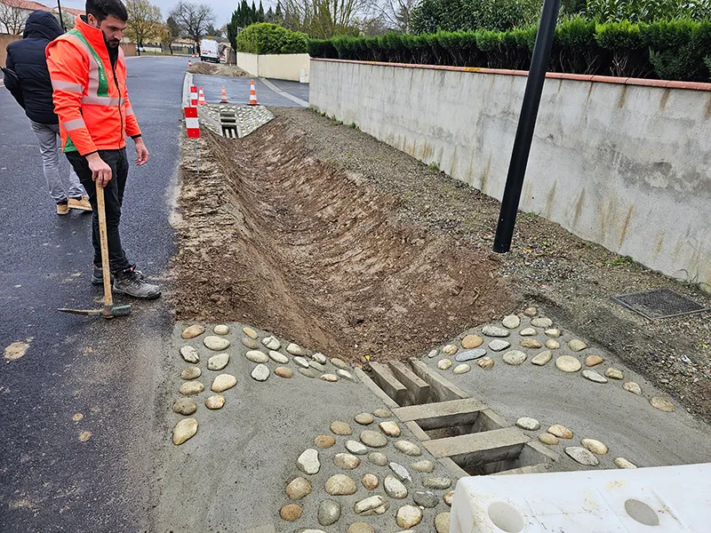 Gestion des eaux pluviales sans réseau existant ni raccordement possible.